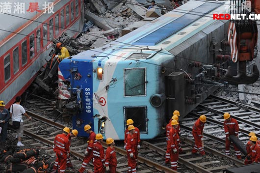 相关人员在事故现场进行抢救。 潇湘晨报记者朱辉峰 摄