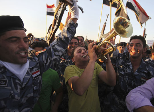 当地时间6月29日,伊拉克安全部队的士兵和民众纷纷走上街头,庆祝美国驻伊拉克军队即将撤离。按照美伊双方协议,驻伊美军战斗部队应该在6月30日最后期限前全部撤出伊拉克城镇。