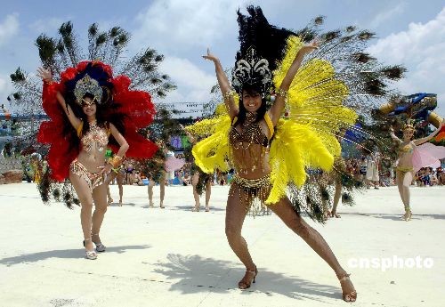 图:桑巴舞女郎广州与游客热辣共舞(2)
