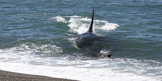 据英国媒体6月30日报道,摄影师罗布·洛特在巴塔哥尼亚旅行期间,有幸拍到了一只逆戟鲸捕杀小海豹的场面。幸运的是,就在被捕杀的最后时刻,小海豹冲上了岸边,而眼看食物到口的老鲸鱼也只能望陆兴叹。