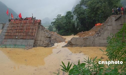 图:广西卡马水库大坝打开缺口泄洪暂缓险情(2)
