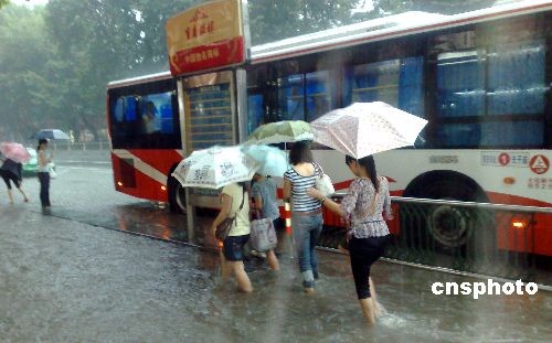 七月七日,南京市区遭遇暴雨,市区一片泽国。中新社发 王秀青 摄