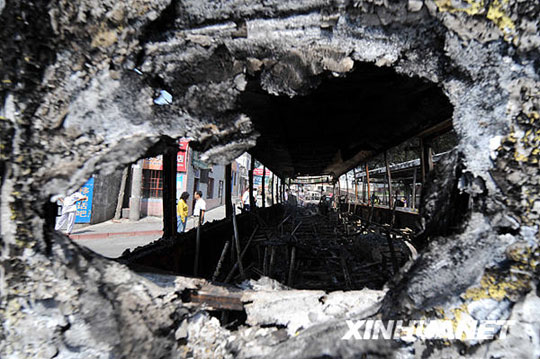 这是7月6日拍摄的乌鲁木齐市北湾街上被烧毁的汽车。据新疆维吾尔自治区党委常委、宣传部长李屹7月7日凌晨透露,截至7月6日19时,乌鲁木齐市“7·5”打砸抢烧严重暴力犯罪事件死亡人数增至156人,其中,男性129人,女性27人;受伤人员1080人。沙达提摄