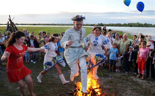 7月6日是白俄罗斯的传统节日——伊万库帕拉节,人们以编织花冠、跳过火堆和下河游泳的方式庆祝这一古老节日。