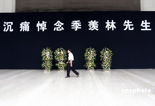 7月12日上午,北大师生及市民纷纷到北京大学正在设置的季羡林先生灵堂。北京大学已成立治丧工作组,在北大百年纪念讲堂南大厅为季羡林先生搭设灵堂,将于下午对外开放,供学校师生和社会各界人士前来祭奠。7月11日上午9时,北京大学资深教授、国学大师季羡林先生在北京301医院辞世,享年98岁。中新社发 郑雄增 摄