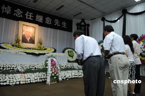 7月13日,各界群众纷纷前往中国国家图书馆内设的任继愈先生灵堂,悼念逝者。著名哲学家、宗教学家、历史学家、国家图书馆名誉馆长任继愈先生于7月11日在北京逝世,享年93岁。