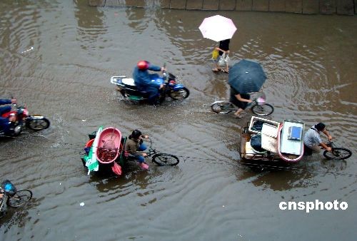 7月14日凌晨,江苏连云港市遭遇暴雨袭击,部分地区囤积了大量的雨水,造成交通堵塞,不少道路低洼处成为泽国,给市民生活带来诸多不便。