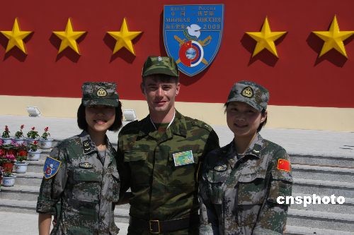 7月15日,参加“和平使命-2009”中俄联合反恐军事演习的中俄双方,在野营村举行开营仪式。中新社发 张雷 摄