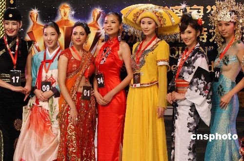 图为参赛的各国选手代表亮相2009亚洲超级模特大赛发布会。中新社发 钱兴强 摄