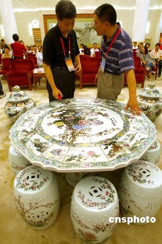 图为清乾隆年间的“粉彩花卉十六开光富贵桌”。中新社发 郑雄增 摄