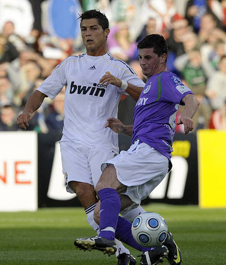 7月20日,在新赛季西甲联赛的一场季前热身赛中,皇家马德里队客场以1比0战胜沙姆罗克流浪者队。创造足坛转会天价的克里斯蒂亚诺·罗纳尔多在比赛中登场亮相。