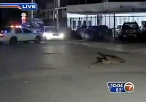 图:美国迈阿密闹市街头出现鲨鱼尸体(3)