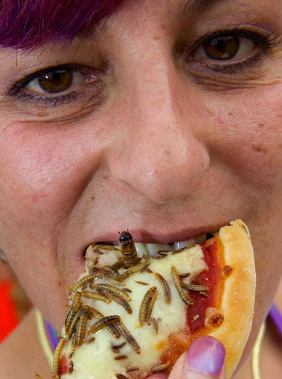 图:美食爱好者大嚼“虫子比萨饼”(2)