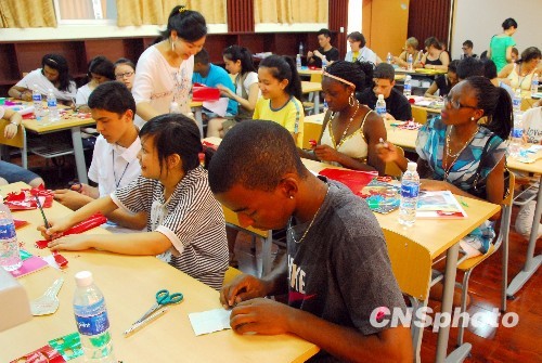 7月27日,由英国儿童学校和家庭部、中国国家汉语国际推广领导小组办公室共同主办的“汉语桥——英国学生夏令营”20日在重庆开营。中新社发 何征 摄