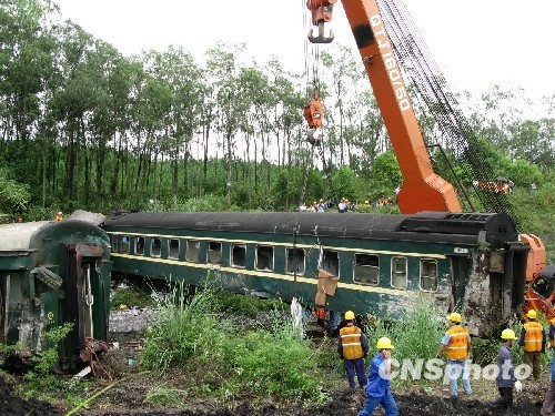 图:广西柳城境内发生载客列车脱轨事故(2)