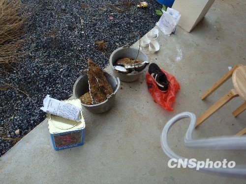 歹徒逃跑时留下的鞋印已被采集。中新社发 艾裴 摄