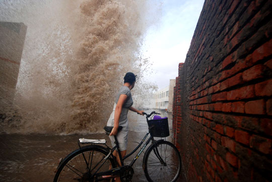2009年8月7日,浙江省温岭市石塘镇鹿头咀,在台风“莫拉克”影响下,狂风掀起数十米的巨浪阵阵拍打着堤坝,声势吓人。今年第8号台风“莫拉克”逐渐逼近浙闽沿海。有可能7日晚间或8日凌晨擦过或登陆台湾东北部沿海地区,然后向福建北部到浙江中部一带沿海靠近。