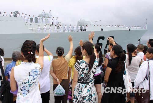 出访海军官兵的家属前往送行。中新社发 李章龙 摄