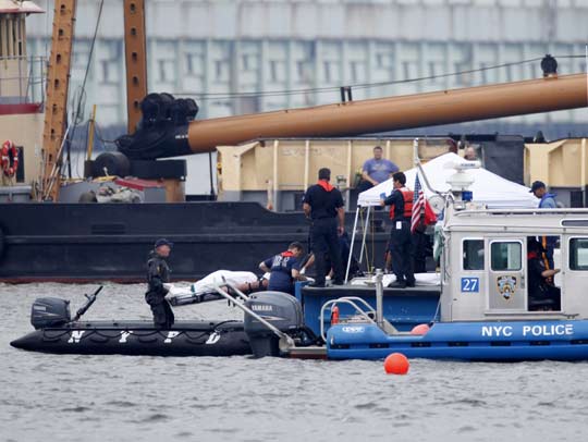 8月9日,在美国新泽西州霍博肯附近的哈德逊河,撞击事故中一位遇难者遗体被打捞出水。据称,目前纽约当局发现的尸体增加到了7具。