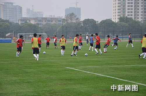 新国奥队员进行分组训练。尹永吉 摄