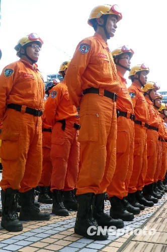 图为搜救队队员整队出发。中新社发 刘舒凌 摄