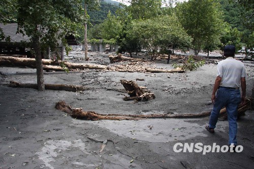 图为昔日喧闹、远近闻名的红叶温泉区,遭遇洪水、土石流淹没,毁于一旦,其重建需要至少1年时间。中新社发 董会峰 摄
