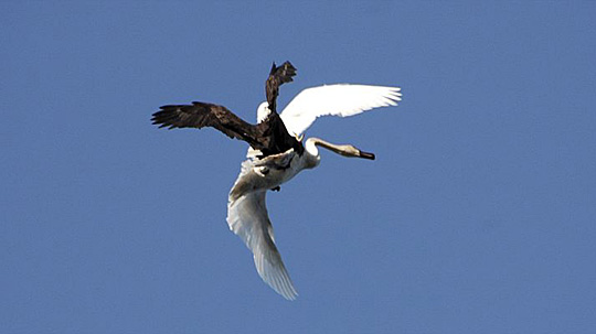 图:天鹅逃避秃鹰捕捉的惊险瞬间(2)