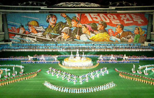 朝鲜集体操“阿里郎”10日举行了今年首演。“演出现场5·1体育场挤满了前来观看大型集体操和艺术演出的人民军人和各阶层人士。此外还有驻朝外交代表和国际机构代表、外国游客、海外同胞等,前来观看了演出。”“阿里郎”的演出人员达10万人,约进行1小时20分钟。