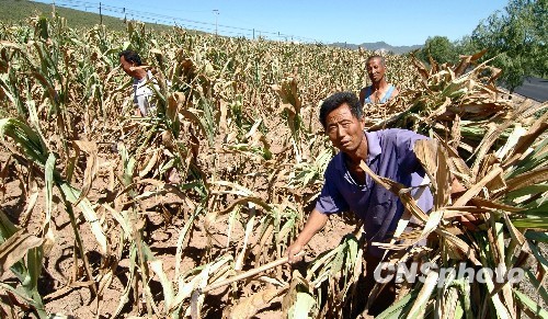 8月12日,农民进行生产自救。辽宁省义县遭受50年一遇严重干旱,有关部门己发布红色预警。现全县18个乡镇受灾,耕地干旱面积达81万亩,占总耕地面积80%,其中30万亩绝收,西部山区6个乡镇人、畜饮水发生困难。
