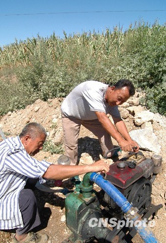头台子乡头台子村农民抗旱水难觅。中新社发 李铁成 摄