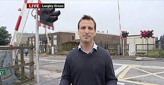 据英国媒体8月11日报道,BBC主持人Richard Westcott正在现场讲述铁路安全时,摄影机拍下了一名男子在栅栏放下瞬间穿越铁轨的冒险行为。