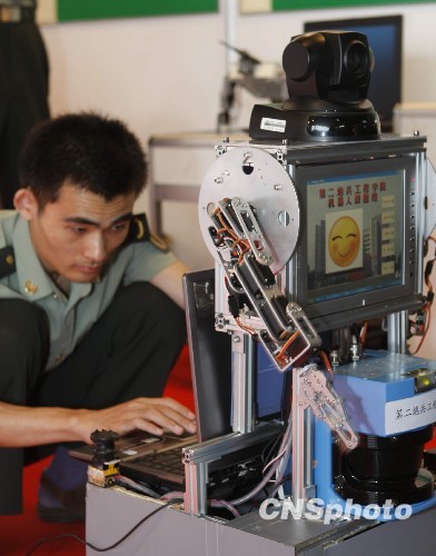 第二炮兵工程学院展示的服务型机器人亮相展会。中新社发 张敏 摄