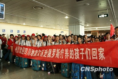 图:367名赴俄罗斯疗养的地震灾区儿童返回四川(2)