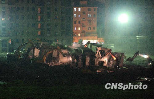 图:上海倒楼拆除工作重新开始(4)