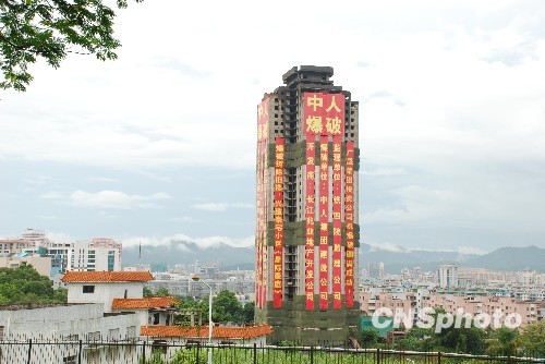 8月13日上午,号称“全国最高烂尾楼”的广东中山市山顶花园,顺利地分三截爆破,在雨中倒下。据悉,山顶花园34层104米高,该楼1992年剪彩,1995年完工,1997年开始一直闲置,是中国迄今为止整体爆破最高的烂尾楼,在亚洲的整体爆破高楼的高度上或是最高的,有可能申请上“亚洲第一爆”。