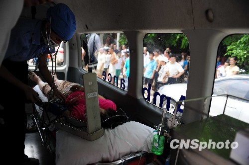 医护人员在救护车上对车祸伤员进行急救。中新社发 蒙钟德 摄