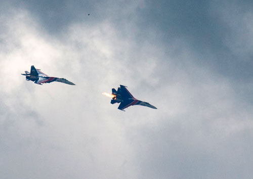 8月16日,“俄罗斯勇士” 飞行表演队的两架苏-27歼击机在莫斯科州茹科夫斯基市上空相撞,1飞行员死亡,另一飞行员跳伞逃生,另外2名飞行员下落不明。