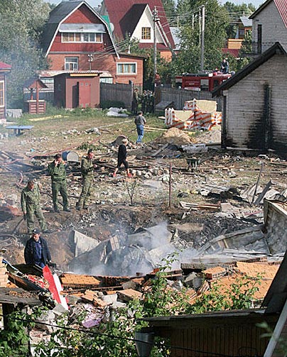 图:俄罗斯相撞飞机残骸砸毁民房(2)