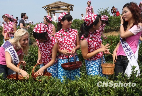 国际旅游小姐茶山体验采茶乐趣(2)