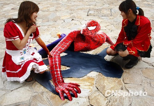 8月17日,蜘蛛侠、天鹅湖、运动鞋等惟妙惟肖的3D立体画在北京蓝色港湾街区首次与北京市民见面。3D立体画在欧美等国家是一种街头绘画艺术,本次展出的立体画都是在地面上创作完成,使用无毒无害的丙烯做颜料,游人可以直接在上面踩踏,也不会轻易掉色。中新社发 郑雄增 摄