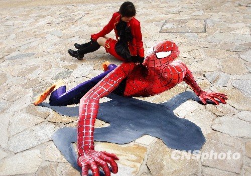 图:3D“蜘蛛侠”北京与市民亲密接触(2)