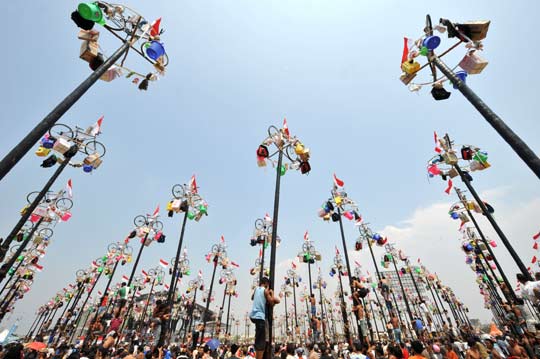 图:印尼上千民众“爬杆”庆祝独立日(3)