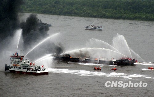 8月18日,中俄界河黑龙江首次应急联合实战演习在中国黑河市与俄罗斯布拉戈维申斯克市之间的港区水域举行。中新社发 邱齐龙 摄