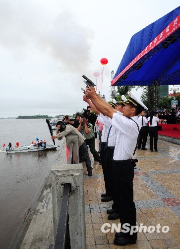 8月18日,中俄界河黑龙江首次应急联合实战演习在中国黑河市与俄罗斯布拉戈维申斯克市之间的港区水域举行。中新社发 邱齐龙 摄