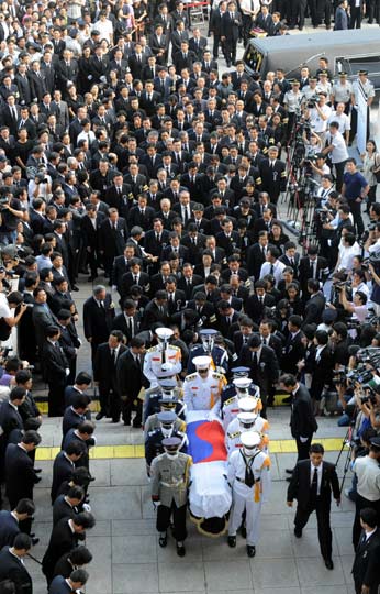 图:韩国前总统金大中灵柩运往国会灵堂(3)