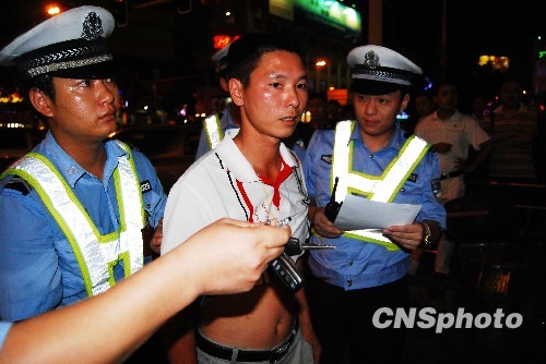 湖南省自8月15日起在全国开展为期两个月的严厉整治酒后驾驶交通违法行为专项行动,全力预防重特大交通事故。中新社发 贺茂峰 摄