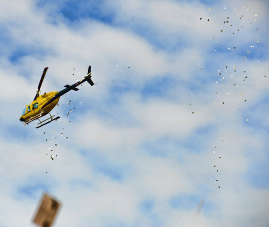 直升机空中抛洒明信片纪念智利摄影日——中新网