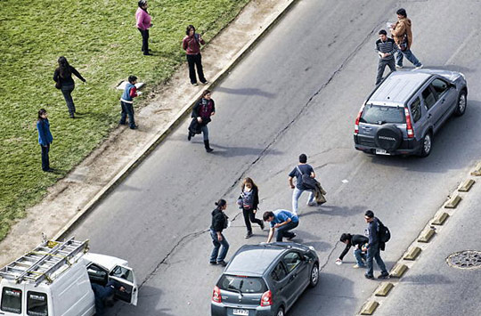 当地时间8月20日,智利首都圣地亚哥市中心,一架直升机在空中抛洒明信片,以庆祝国家摄影日。当日,共有5万张印有智利历史图片的明信片从空中“降落”。
