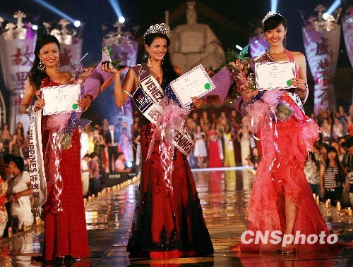 8月24日晚,来自120个国家和地区的120位2009国际旅游小姐在河南新郑参加角逐该奖项。