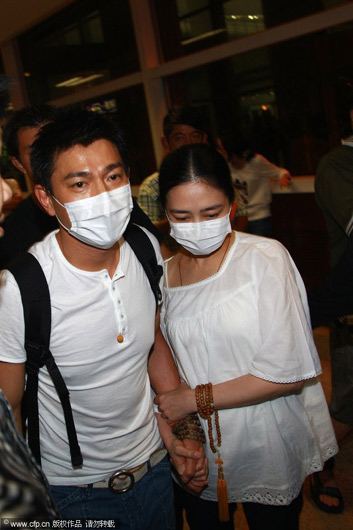 8月25日,刘德华与朱丽倩十指紧扣返港。